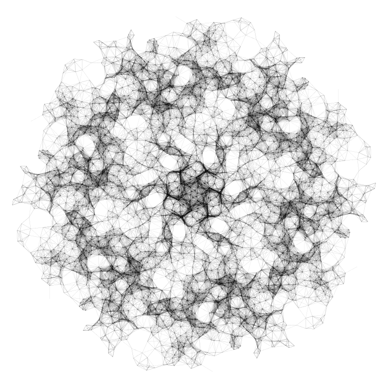 The hexagonal symmetry forms a central flower with arms going off into chaos.